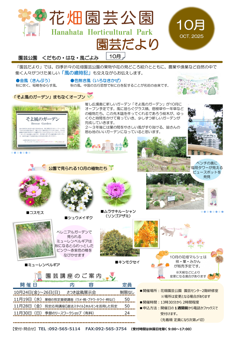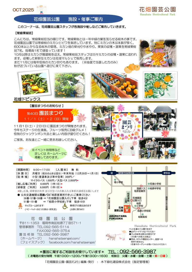 裏面に毎年恒例、『園芸まつり』のご案内を掲載しています。