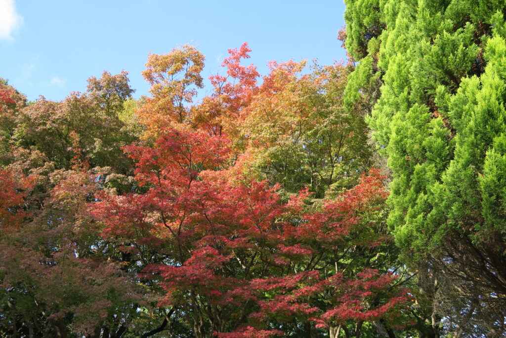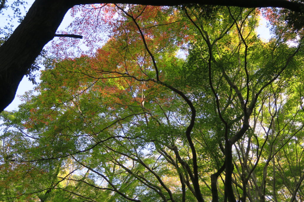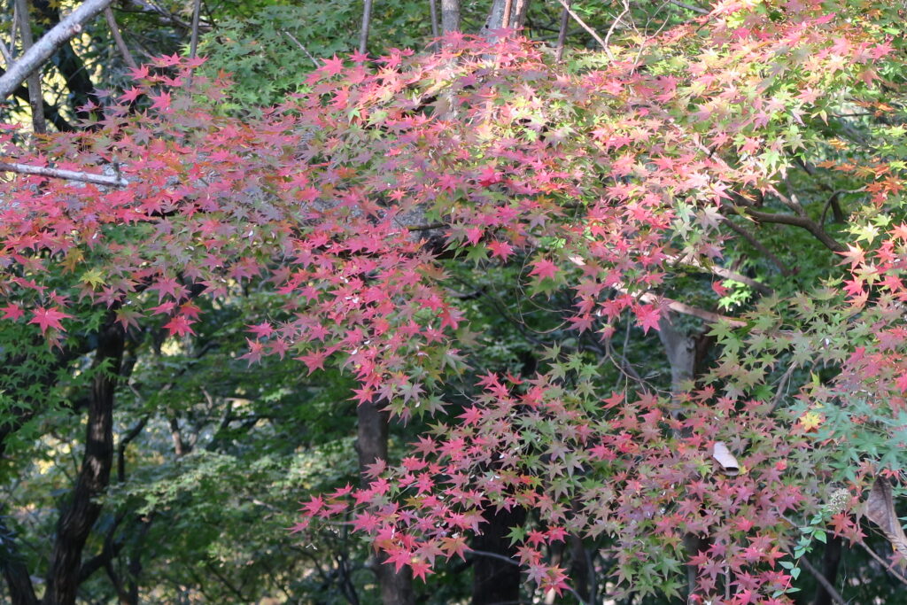 このところの冷え込みでもみじの谷のヤマモミジも