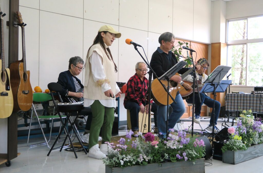 ギターとピアニカの演奏と歌でポップスを楽しませて頂きました。