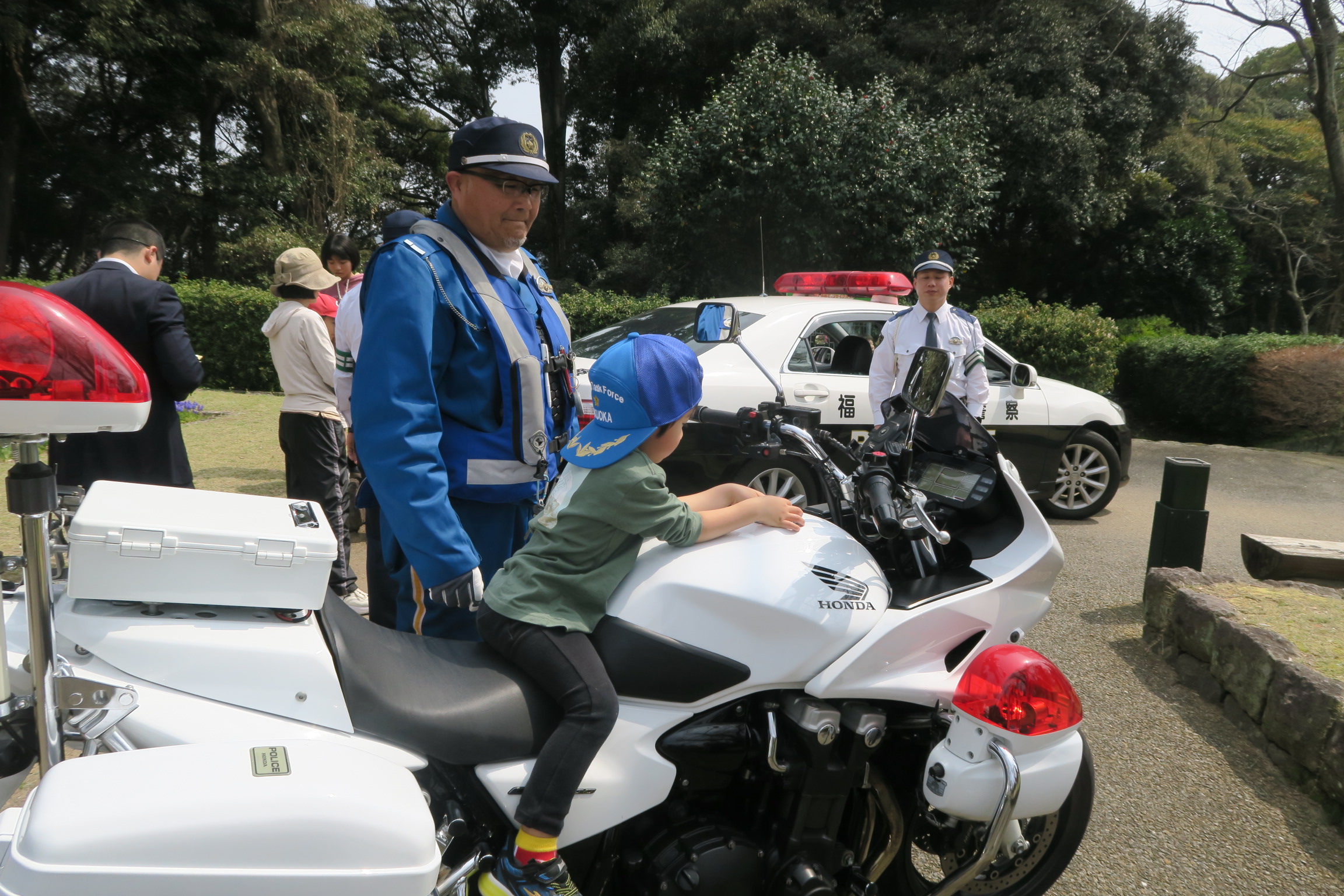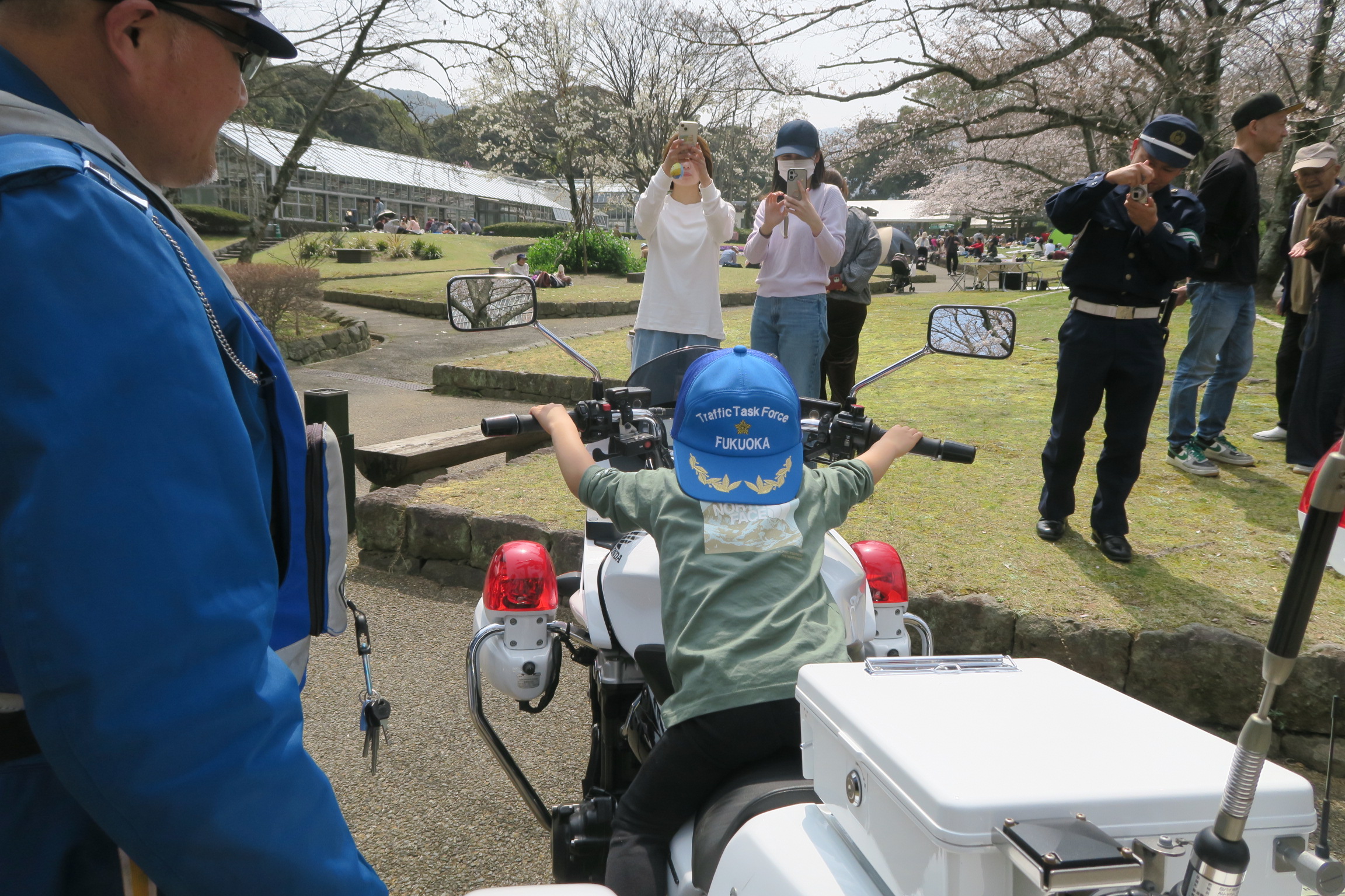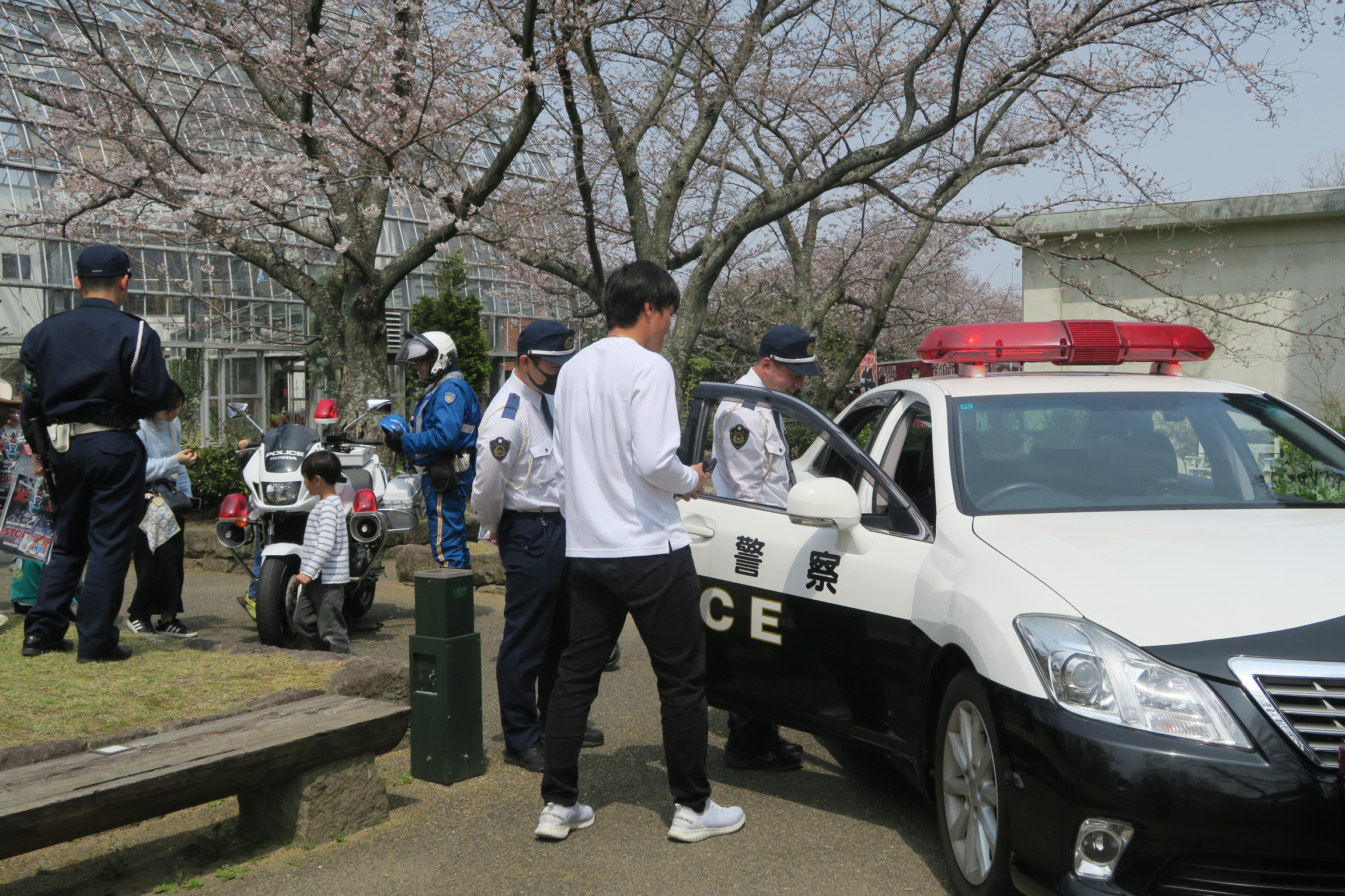3/28のまつりの会場には南警察署からパトカーや白バイがやってきました。