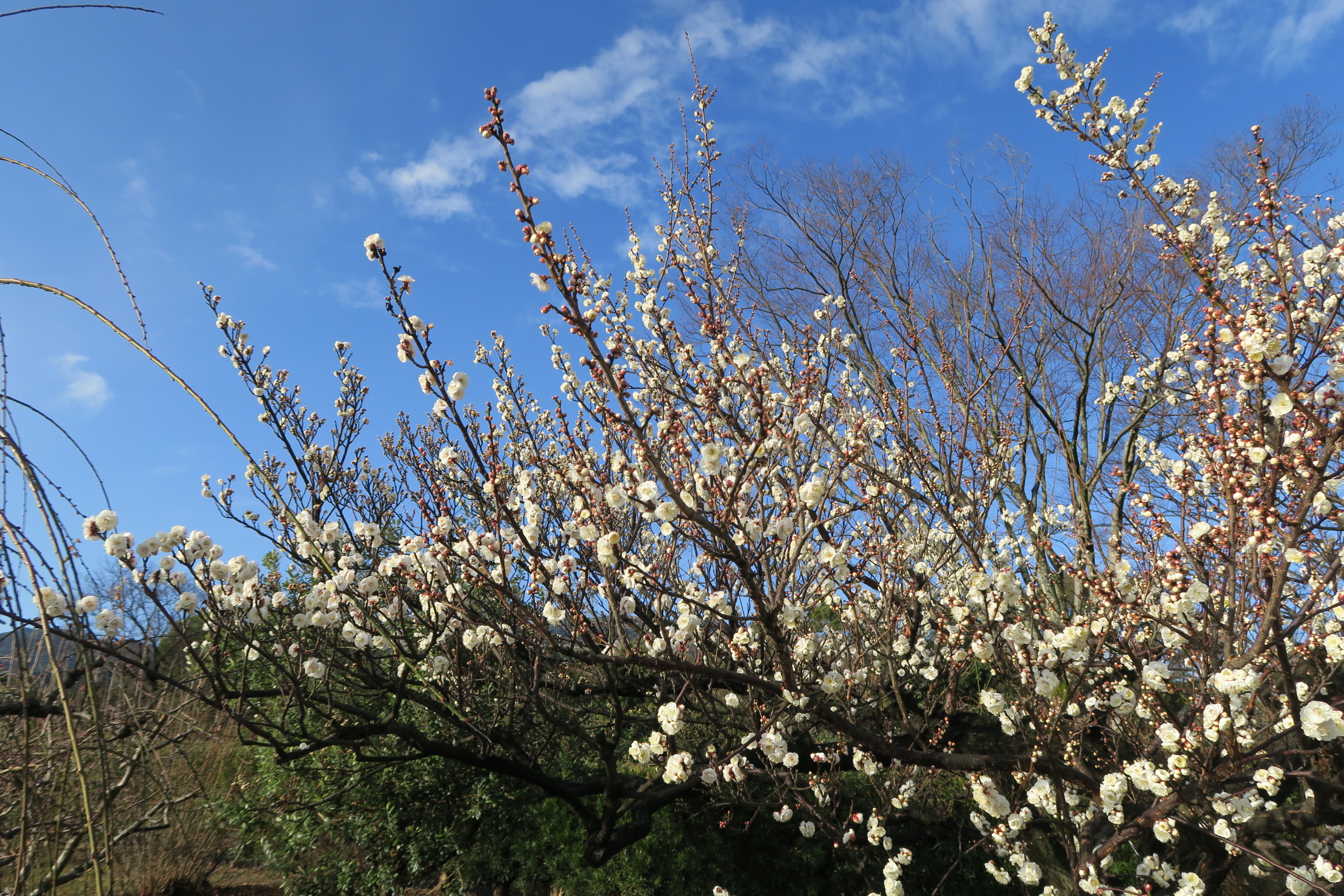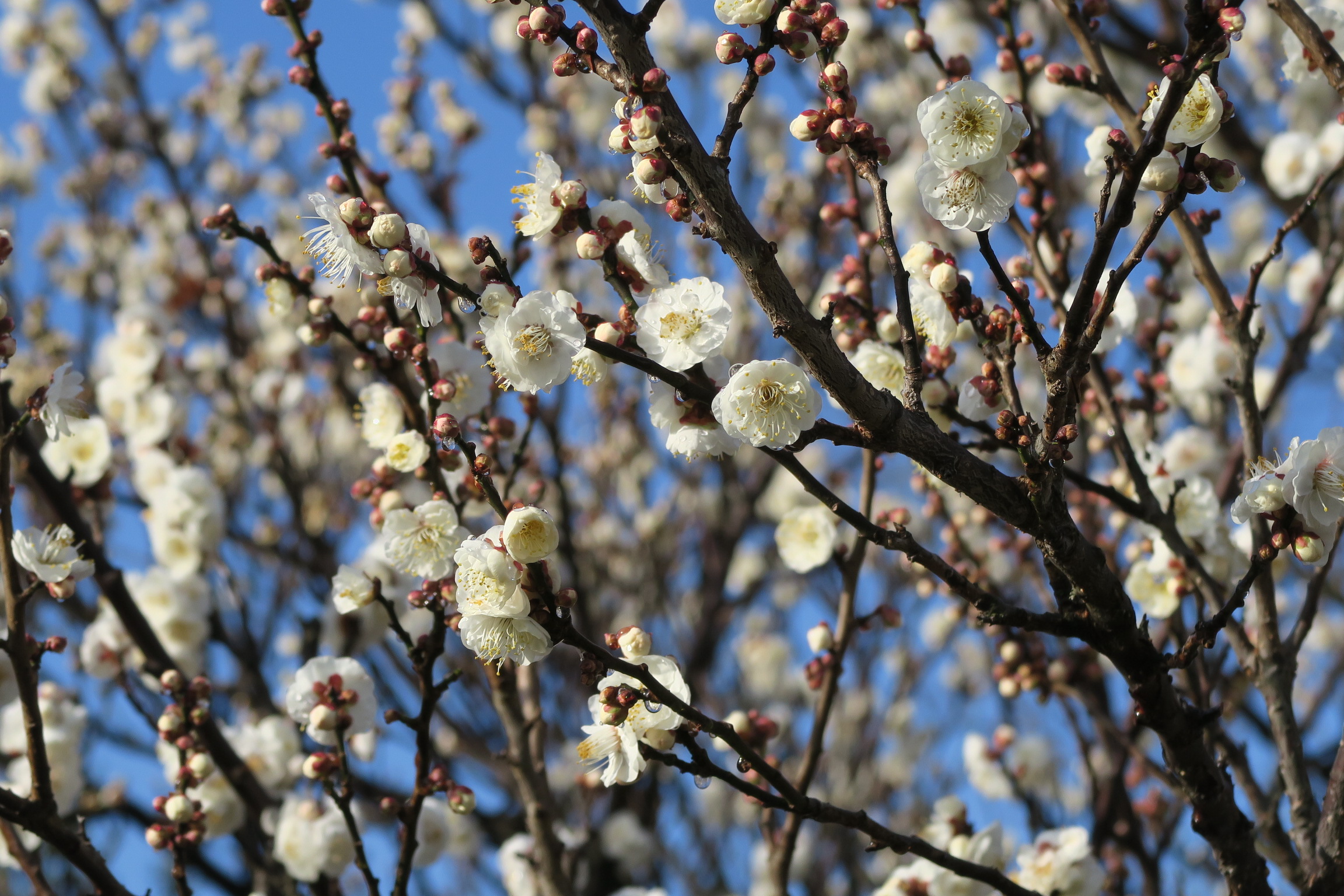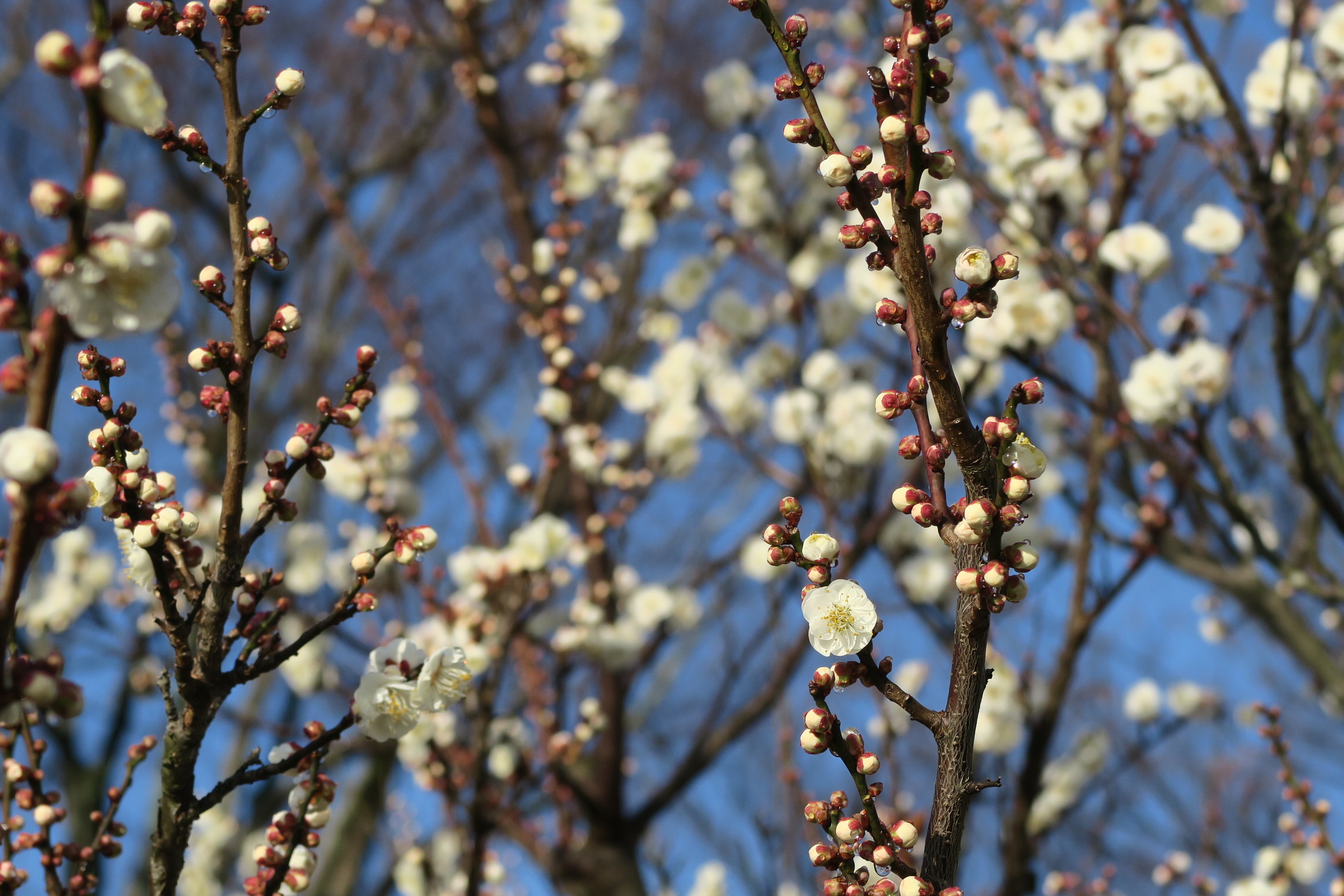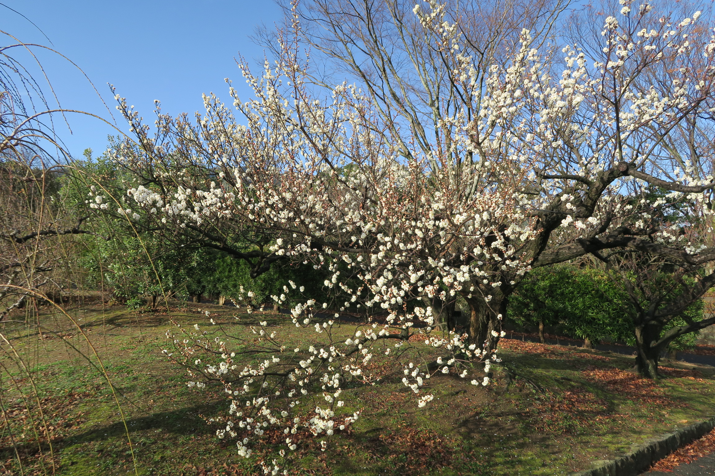 催し広場奥にある太宰府の飛梅と同じ品種の色玉垣の花が咲き始めました。