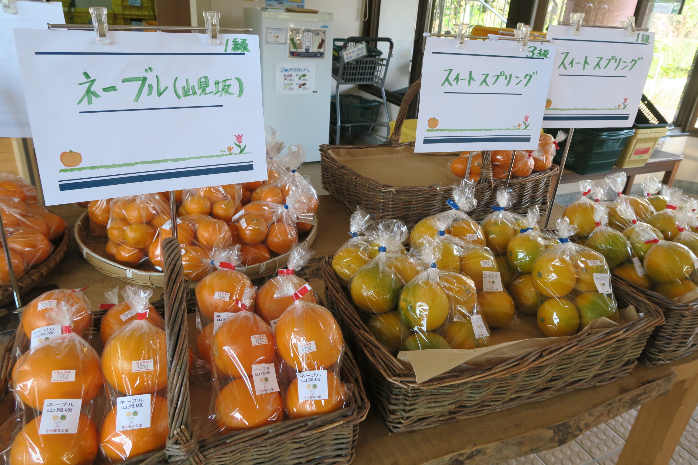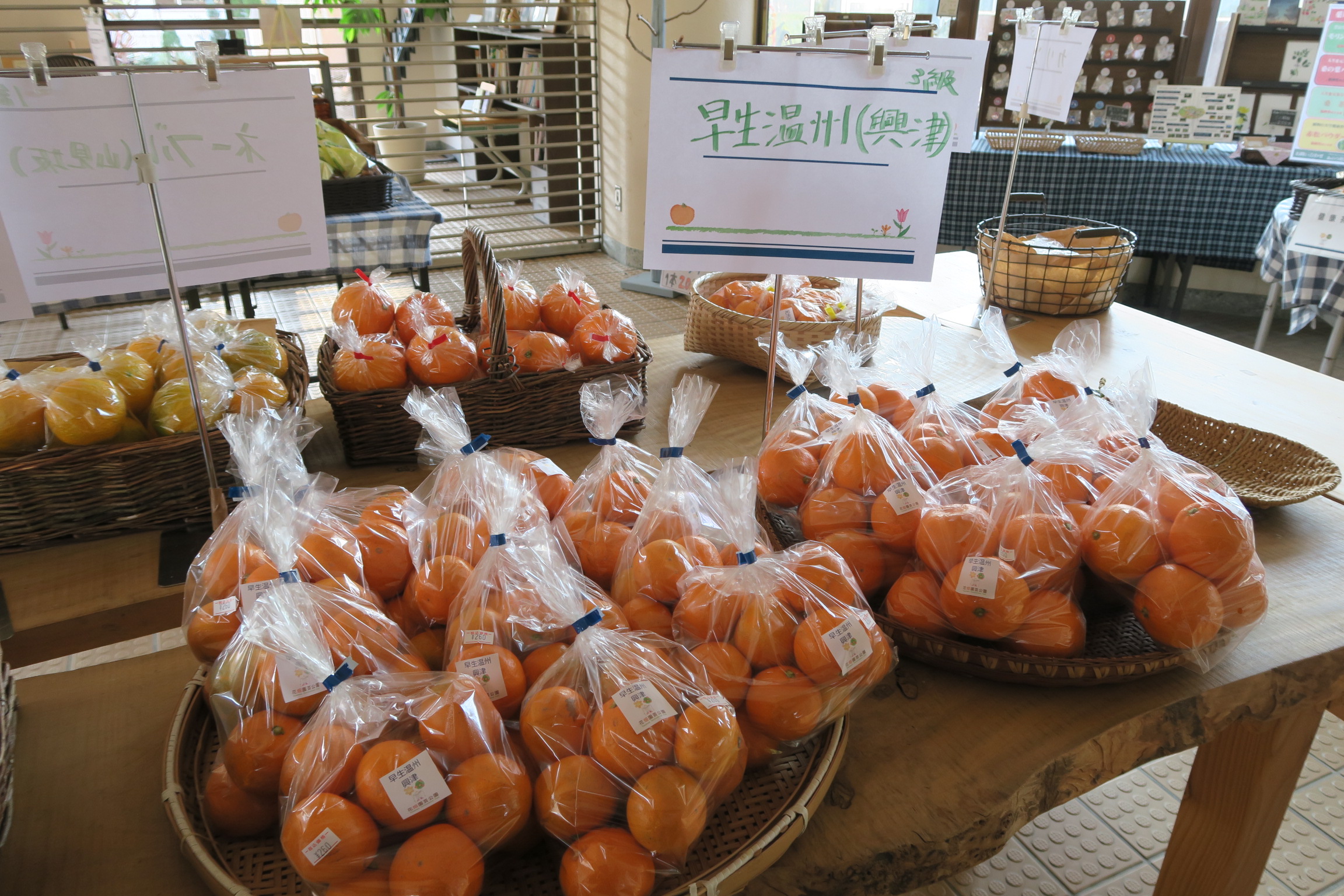 果物を販売している花畑マルシェのスタッフも、美味しい新鮮なミカンを