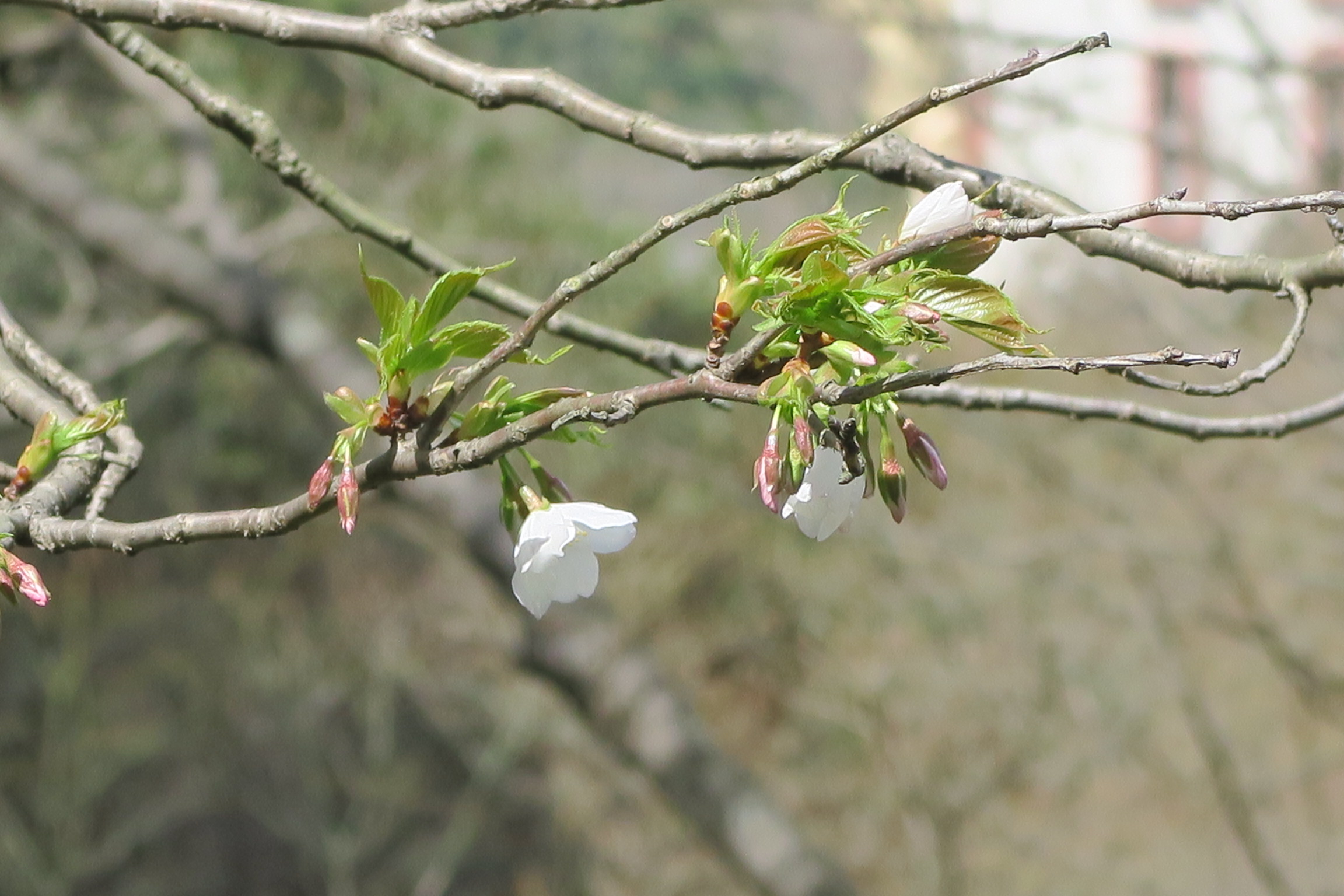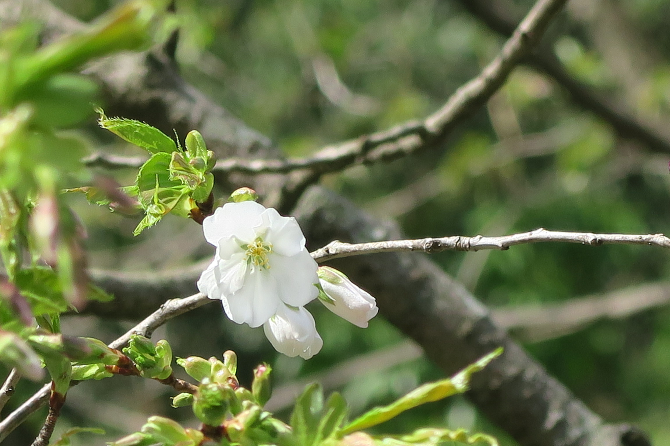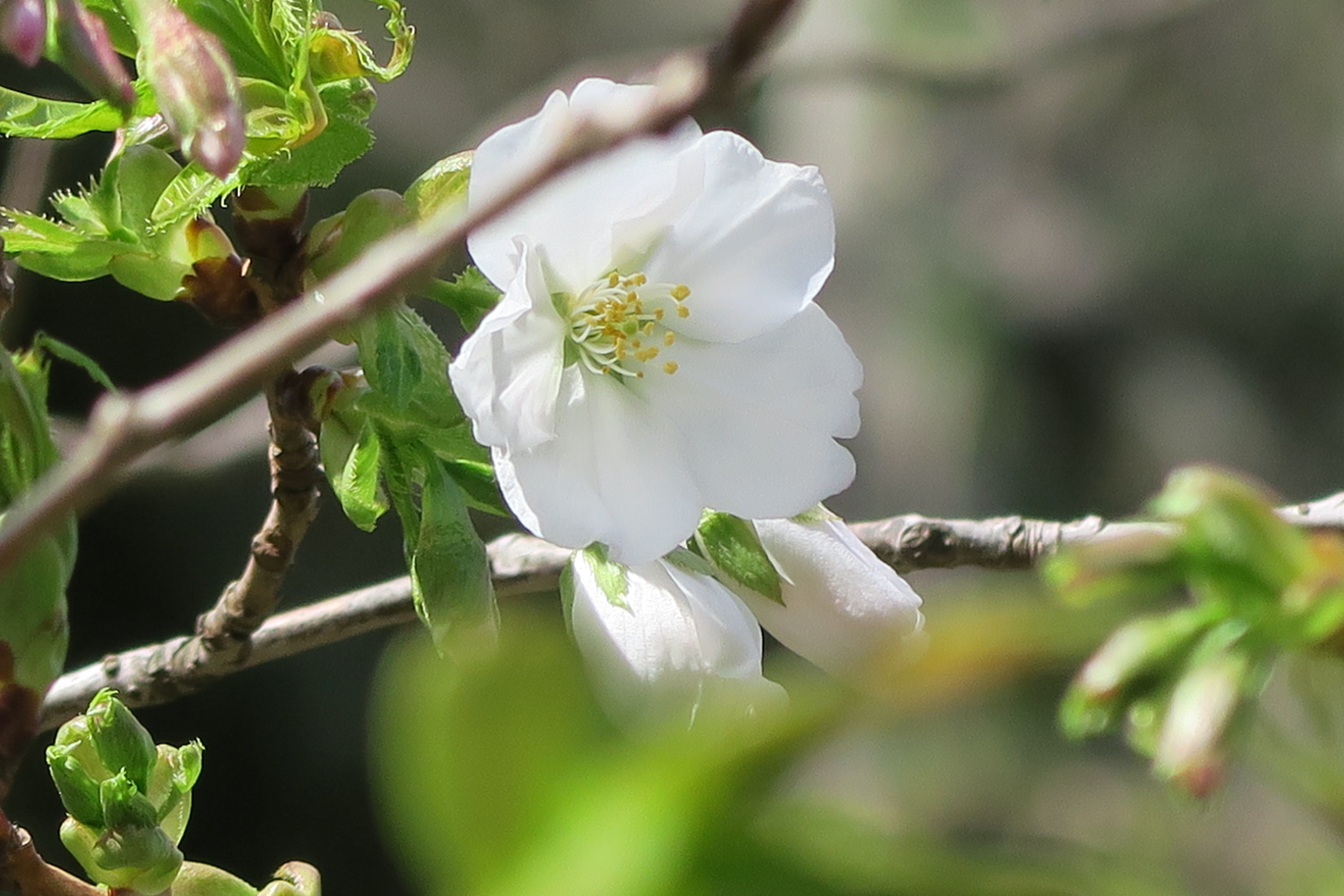 2026年3月17日に昨年より1週間ほど早く純白のオオシマザクラの花が開花しました。